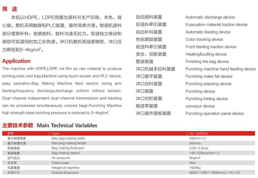DC-G450x2 high speed automatic bag making machine