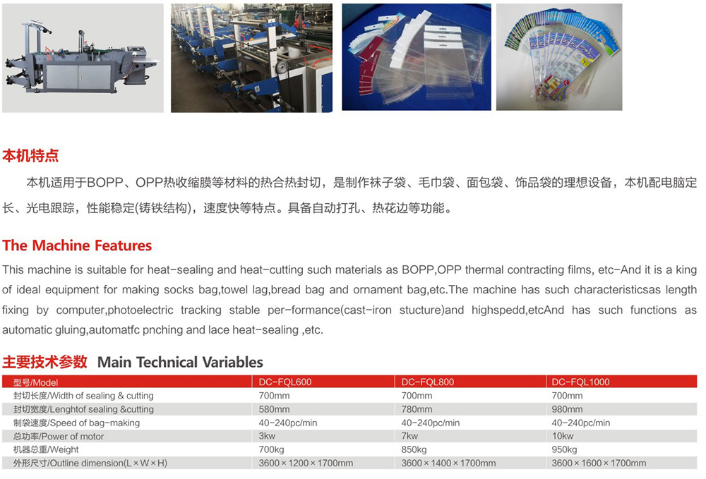 DC-FQL600-1200 computer hot edge sealing bag making machine